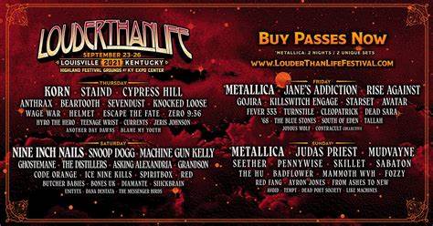 An incredible music lineup has been announced for the sixth Louder Than Life, set to take place September 23-26, 2021 at Highland Festival Grounds at KY Expo Center in Louisville, Kentucky. METALLICA (two nights / two unique sets), NINE INCH NAILS and KORN will headline the largest rock festival in America, which will also feature performances from JUDAS PRIEST, Snoop Dogg, JANE'S ADDICTION, STAIND, RISE AGAINST, MUDVAYNE, CYPRESS HILL, Machine Gun Kelly, ANTHRAX, GOJIRA, GHOSTEMANE, SEETHER, PENNYWISE, BEARTOOTH, THE DISTILLERS, KILLSWITCH ENGAGE and many more. Single-day and weekend passes for Louder Than Life are on […]