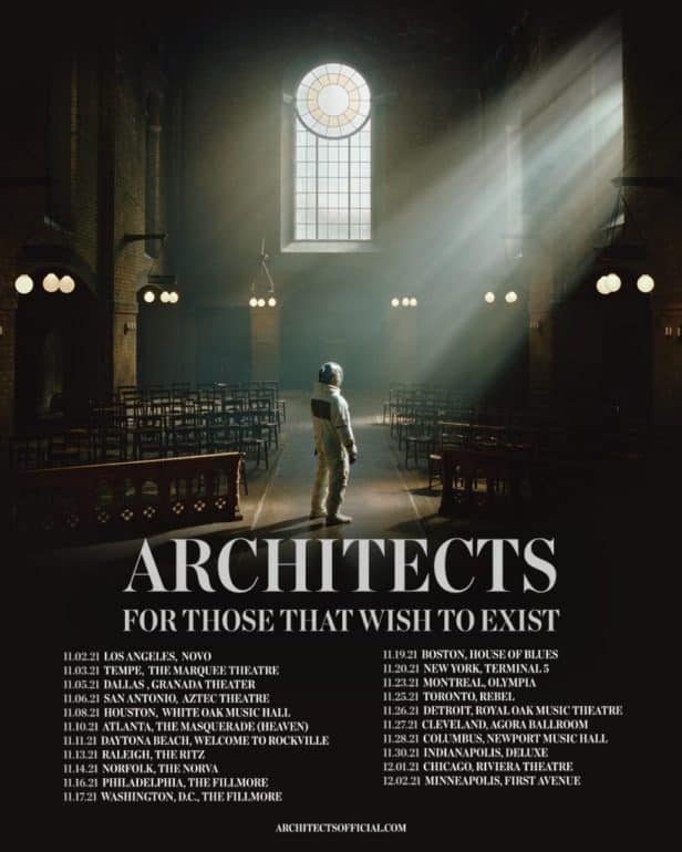ARCHITECTS‘ latest album, “For Those That Wish To Exist”, finds the band tackling the biggest questions facing the future of our planet with its grandest, most expansive sonic offering yet building upon ARCHITECTS‘ hallmark post-metalcore sound by layering a burgeoning influence of electronics and orchestral strings, horns and choirs. The result is a rich tapestry that transcends the limitations of genre and rewards exploration and immersion in its journey. The record’s 15 tracks hang in a limbo between energizing positivity that it is not too late to correct our collective course and paralyzing negativity of defeatism; where hope and despondency are bed-fellows triggered daily by the simple act of existence. A reflection of the human condition, “For Those That Wish To Exist” calls for all of us to rise to challenge established models and strive for a collective betterment.