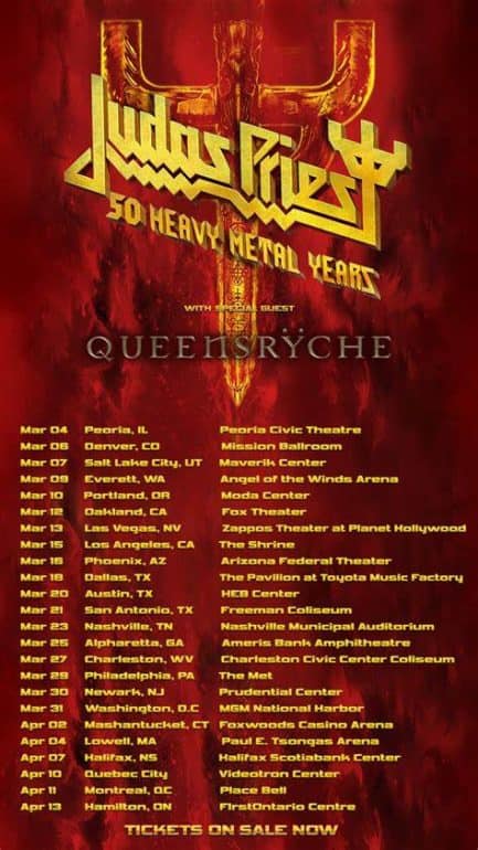 JUDAS PRIEST has announced the rescheduled “50 Heavy Metal Years” North American tour dates for March-April 2022. Support on the trek will come from QUEENSRŸCHE.