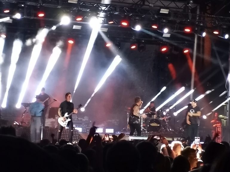The rest of their set was a blistering feast of their best including Fashionably Late, I’m Not A Vampire, Voices In My Head, The Drug In Me Is You, Just Like You, Fuck You And All Your Friends and closed the show out with Popular Monster. Really put an amazing show, the lead singer Ronald Radke held the crowd in the palm of his hand and had them singing and dancing and fighting all throughout their set. Yes there were lots of fights in the crowd, apparently Sioux City can’t handle behaving like human beings during the show, but my son did have fun watching and video taping the fights. watching them back they were just drunk idiots being drunk idiots. On to Papa Roach!!