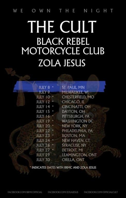 THE CULT will embark on a North American tour this summer. The 16-date trek will kick off on July 8 in St. Paul, Minnesota and will conclude on July 30 in Ontario, Canada. Thirteen of the shows will include support from BLACK REBEL MOTORCYCLE CLUB and ZOLA JESUS. Tickets go on sale this Friday, May 13.