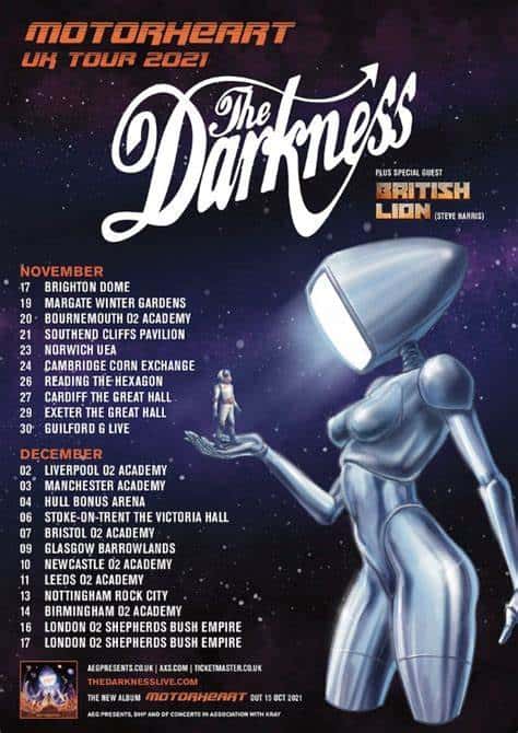 THE DARKNESS will embark on a full U.K. tour in November and December this year with support coming from BRITISH LION, the side project of legendary IRON MAIDEN founder and bassist Steve Harris.